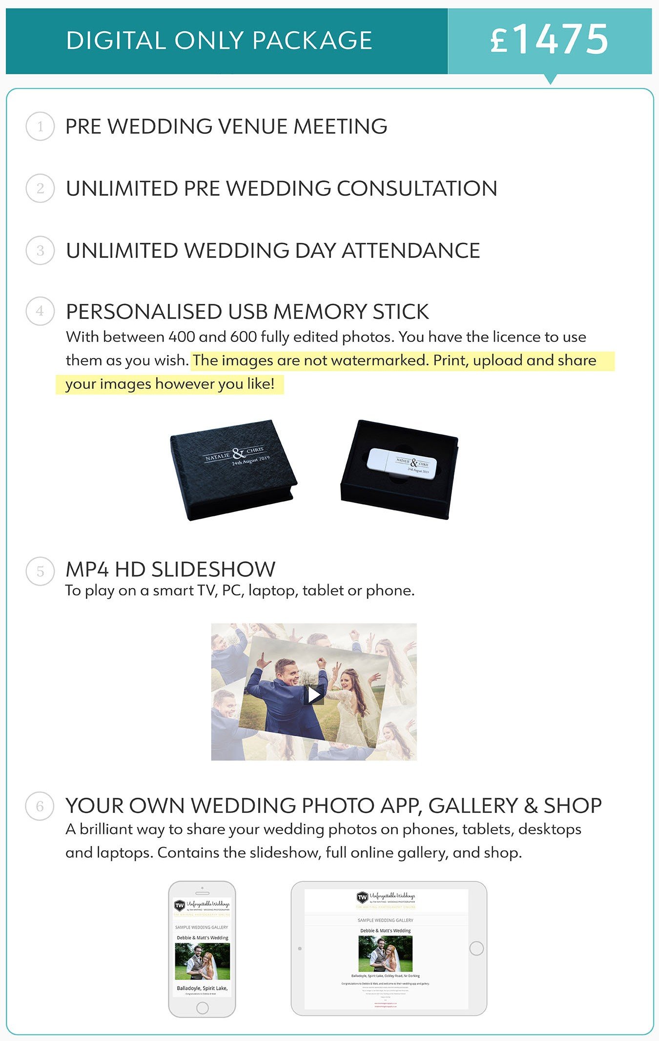 A £150 deposit is necessary to secure your booking, and full final payment is required four weeks before the wedding day